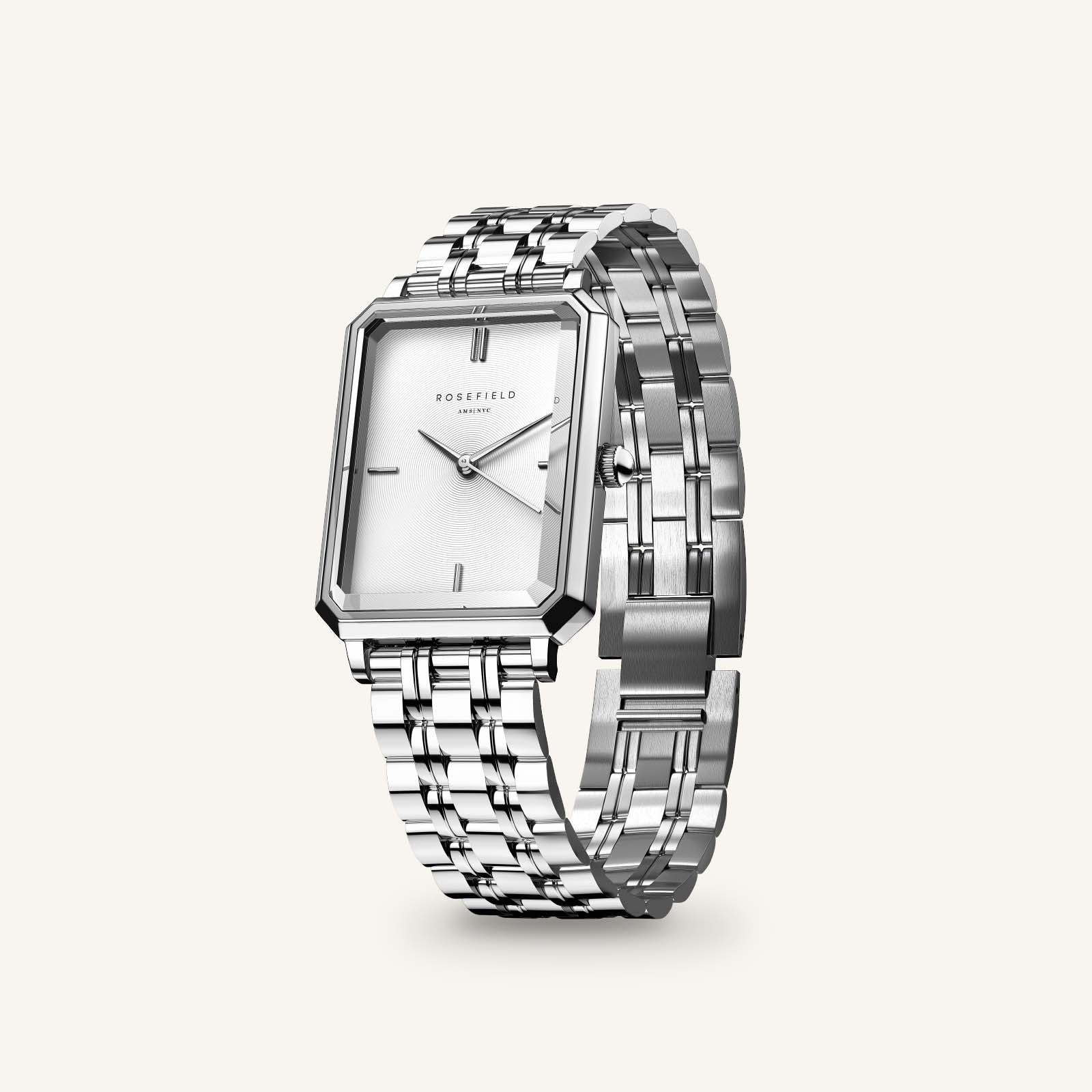 The Octagon XS ist die perfekte Uhr für ein zarteres Handgelenk. Die nur 24 mm große, achteckige Uhr wirkt klassisch und doch modern dank atemberaubenden Designdetails wie poliertem 3D-Facettenglas und einem eleganten Armband mit 5 Gliedern.