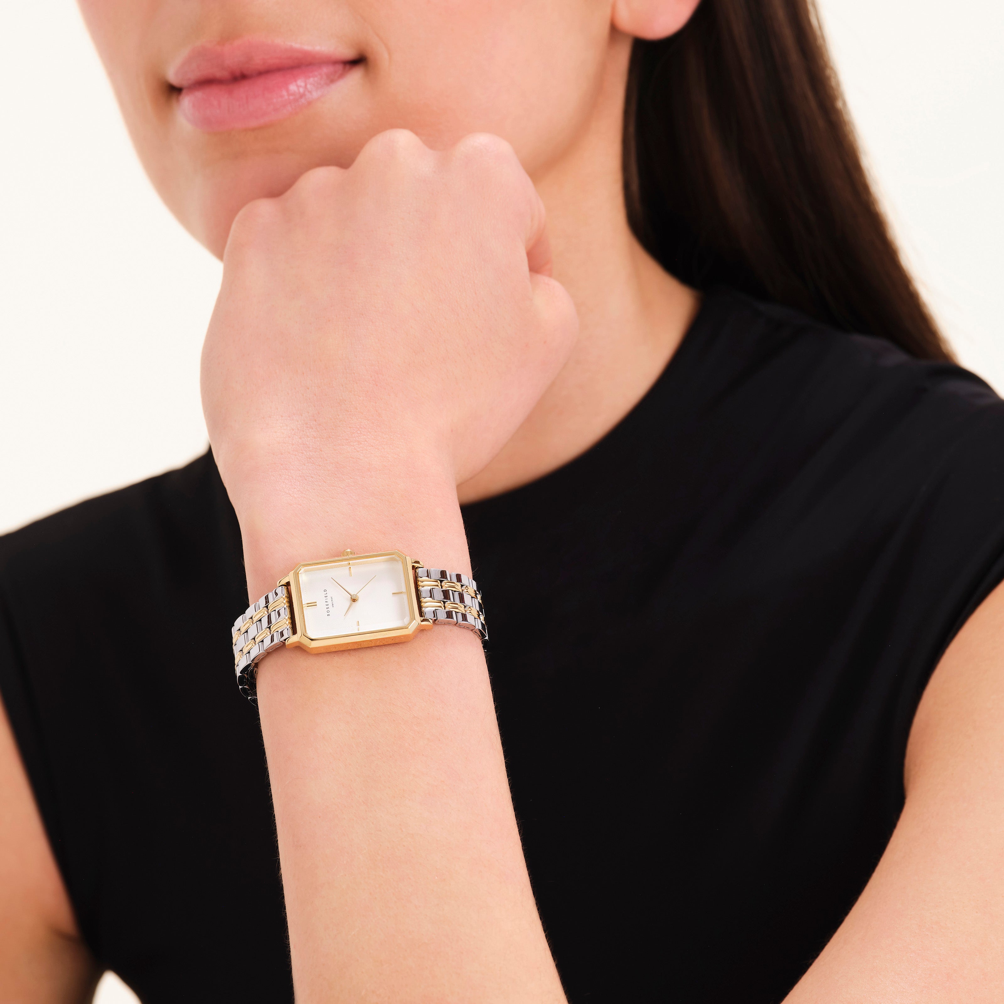 The Octagon, Rosefields neue moderne Uhrenkollektion und ein augenblicklicher Klassiker. Die seltene achteckige Form und das polierte 5-Glieder-Armband erinnern an die Eleganz der 1920er-Jahre und definieren die Uhr als Modeaccessoire neu.
